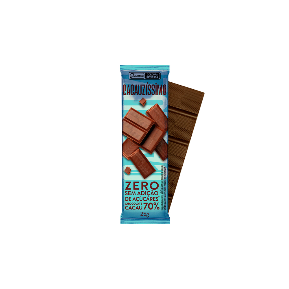 Um dos destaques da marca, o chocolate 70% cacau zero açúcar é perfeito para quem prefere um sabor mais intenso, com mais cacau e se preocupa com a saúde.