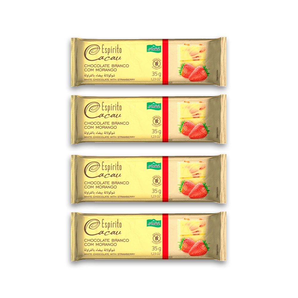 A combinação de Chocolate Branco com Morango harmoniza a maciez do chocolate feito com manteiga de cacau com a crocância dos morangos liofilizados, proporcionando uma experiência com sabor de infância.